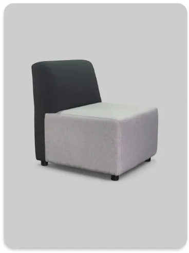 כורסת המתנה קומפקטית ומודרנית המשלבת שני גווני בד ליצירת מראה דינמי וצעיר. העיצוב הנקי, ללא ידיות, מאפשר חיסכון במקום וגמישות בסידור חלל ההמתנה או הלאונג'.